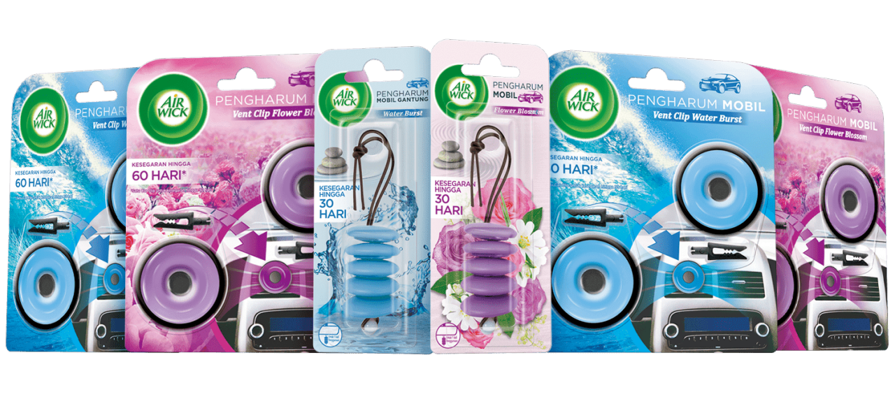 Parfum Mobil Air Wick mengeliminasi bau tidak sedap dan memberikan aroma segar yang menyenangkan di mobil Anda. Parfum Mobil Air Wick memiliki kualitas keharuman terbaik disertai dengan desain yang elegan. Cukup duduk dan nikmati kesegaran Air Wick, kapan pun dan di mana pun Anda berkendara - bahkan dapat bertahan hingga 60 hari*. Berikan mobil Anda kesegaran dan perasaan menyenangkan. *30 hari untuk satu clip